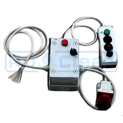 Готовый комплект для подключения к сети и дистанционного управления электродвигателем 380В. Пульт дистанционного управления работает при безопасном напряжении 24В.