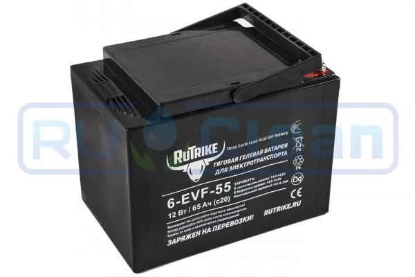 Аккумуляторная батарея RuTrike 6-EVF-55 изготовлена по технологии GEL (с гелеобразным кислотным электролитом) имеет длительный срок службы и предназначена для интенсивного использования. Высокая производительность при работе в глубоком цикле. Свинцовые пластины в виде решетки из особого сплава высокого качества, который защищает батарею от коррозии и снижает газовыделение. Специальная свинцовая паста высокой плотности позволяет работать до глубокого разряда, не снижая срок службы аккумулятора. Высокая надежность и безопасность: высокая прочность контейнера и крышки аккумулятора, изготовленных из АБС-пластика, оптимизированная модификация предохранительного клапана, надежные медные клеммы, проводящие ток большой силы – все это служит гарантией высокой надежности и безопасности эксплуатации в экстремальных условиях.