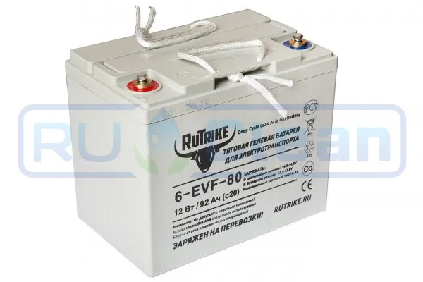 Аккумуляторная батарея RuTrike 6-EVF-80 изготовлена по технологии GEL (с гелеобразным кислотным электролитом) имеет длительный срок службы и предназначена для интенсивного использования. Высокая производительность при работе в глубоком цикле. Свинцовые пластины в виде решетки из особого сплава высокого качества, который защищает батарею от коррозии и снижает газовыделение. Специальная свинцовая паста высокой плотности позволяет работать до глубокого разряда, не снижая срок службы аккумулятора. Высокая надежность и безопасность: высокая прочность контейнера и крышки аккумулятора, изготовленных из АБС-пластика, оптимизированная модификация предохранительного клапана, надежные медные клеммы, проводящие ток большой силы – все это служит гарантией высокой надежности и безопасности эксплуатации в экстремальных условиях.