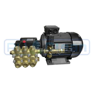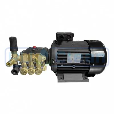 Привод насоса высокого давления - трех фазный (380В), асинхронный, 4-х полюсной электромотор, с частотой вращения 1400 об/мин, мощностью 5,5 кВт. С данным силовым агрегатом аппарат способен подавать воду под давлением 40-175 бар и потоком воды 400-800 л/час.