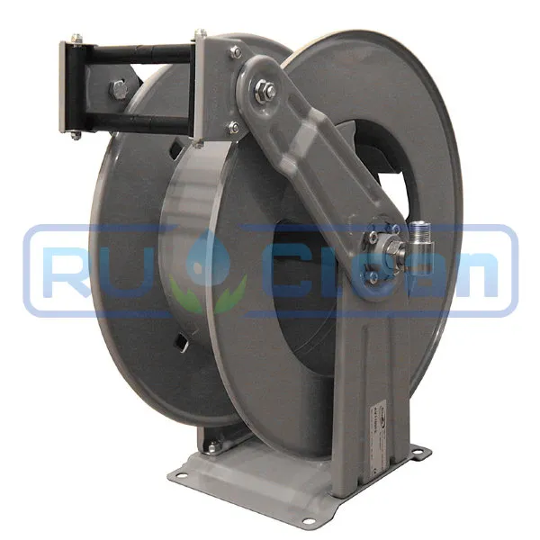 Механизм намотки шланга - инерционный или автоматический с пружинным приводом. Намотка шланга на барабан происходит за счет энергии сжатой во время разматывания пружины. Самый распространенный тип привода: обеспечивает максимальное удобство работы, надежный и неприхотливый. Рекомендуем данную конструкцию, если стоит задача увеличения производительности труда, особенно при частом использовании или при работе в сложных условиях.