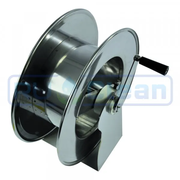 Ручная шланговая катушка - барабан ручной усиленный для рукава 50м 1/4" или 25м. 1/2"(нерж.) 1/2"ш.1/2"ш. 200 бар. Катушка работает в любых условиях, включая самые экстремальные. Изготовлена из нержавеющей стали AISI 316, которая часто используется в пищевой промышленности, включая лаборатории, животноводстве или в химической промышленности.