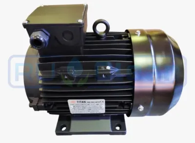 4-х полюсной асинхронный электромотор TOR мощностью 4 кВт, с частотой вращения ротора 1450 об/мин. Полый вал диаметром 24 мм, соединение валов по типу шпонка-паз. Конструктивное исполнение - горизонтальное с опорными лапами.