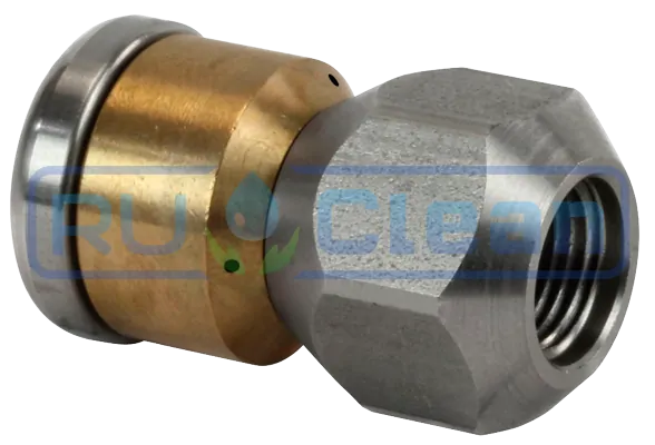 Каналопромывочная вращающаяся форсунка R+M ST-49.1 для бытовых и профессиональных аппаратов высокого давления. Коэффициент потока 055, подключение 1/8" гайка, бой назад.