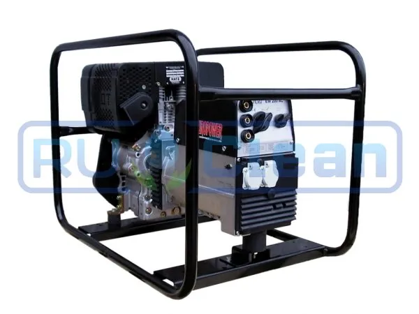 Однофазный сварочный генератор переменного тока Europower EP 200 DX1 AC - спроектирован по классической схеме на основе дизельного двигателя Hatz (Германия) и синхронного саморегулирующегося необслуживаемого генератора Sincro с функцией сварочного аппарата. Дизельный сварочный генератор Europower EP 200 DX1 AC может применяться в коммунальных службах, аварийных бригадах, на строительстве и т.д. Помимо сварочной функции, дизель-генератор может выдавать напряжение 220 вольт. Максимальная мощность приборов, подключаемых к генератору Europower EP 200 DX1 AC составляет 5,4 кВт, а это значит, что например при строительстве к нему можно подключить электроинструмент или например освещение.Установленный на сварочный дизельный генератор Europower EP 200 DX1 AC топливный бак 5 литров, позволяет работать до 2,6 часов.