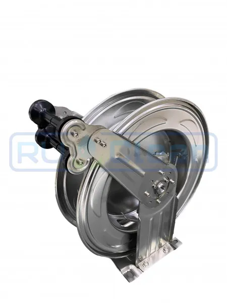 Барабан инерционный для шланга высокого давления, нержавеющая сталь, вместимость 20 метров шланга (5/16), максимальное давление до 275 бар. Соединение 3/8 гайка - 3/8 штуцер.