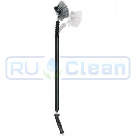 Копье с щеткой Flex Mosmatic - имеет дополнительную функцию по сравнению со всеми стандартными копьями со щетками. Прямо перед щеткой встроен механизм, который удерживает щетку в "плавающем" состоянии, если отсутствует давление. Как только давление воды достигает величины минимум 2.5 bar активируется механизм Flex. Это происходит благодаря двигающемуся вперед штырю. Как только давление упало, штырь двигается в выходное положение и щетка сгибается (надламывается). Встроенное вращающееся соединение дает неограниченную возможность двигаться между ручкой и копьем со щеткой. Шланги не перекручиваются и дают возможность надежного обращения с копьем с щеткой.