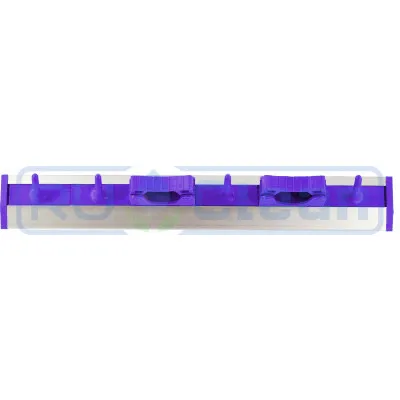 Настенное крепление (направляющая с крючками, резиновые зажимы и боковые заглушки) 4 крючка и 2 зажима. Крепление со сменными комплектующими, предназначено для настенного хранения инвентаря на пищевых предприятиях.