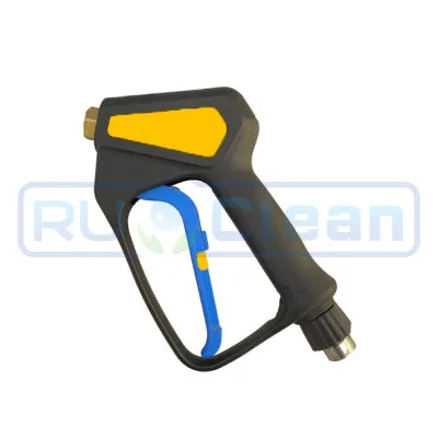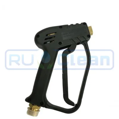 Максимальное давление 390бар, максимальная пропускная способность 30л/мин. Надежная и ударопрочная конструкция. Курок оснащен подключением с резьбой на входе 3/8" с вращающимся фитингом. Вращающееся соединение не позволяет скручиваться шлангу, что значительно облегчает работу оператору моечной установки.