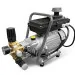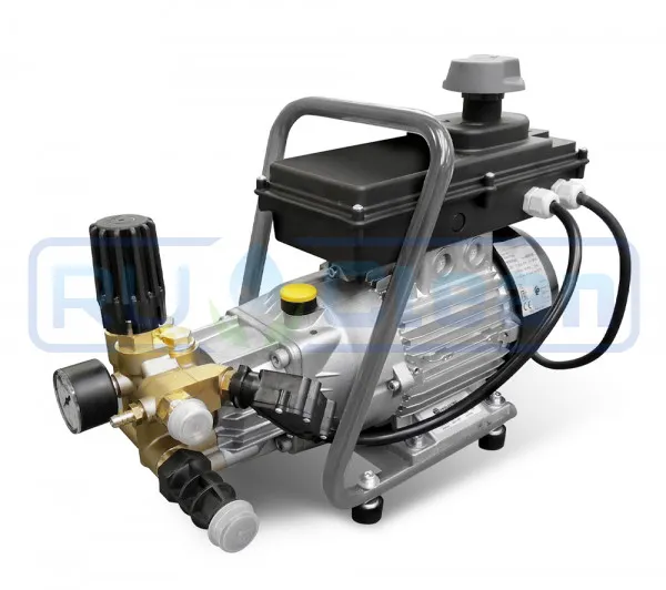 Привод насоса высокого давления - однофазный (220В), асинхронный, 2х- полюсной электромотор, с частотой вращения 2800 об/мин, мощностью 2,9 кВт. С данным силовым агрегатом аппарат способен подавать воду под давлением 135 бар и потоком воды 600 л/час. Автомойка оснащена помпой с аксиальной передачей. Система управления автомойкой с функцией мгновенного автоматического отключения (Total-Stop). Когда в процессе работы оператор отпускает курок пистолета, то регулятор давления переводит насос в режим байпас, и в этот же момент автоматика выключает электродвигатель.
