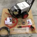 Привод насоса высокого давления - однофазный (220В), асинхронный, электромотор с частотой вращения 1450 об/мин, мощностью 3 кВт. С данным силовым агрегатом аппарат способен подавать воду под давлением 150 бар и потоком воды 780 л/час.