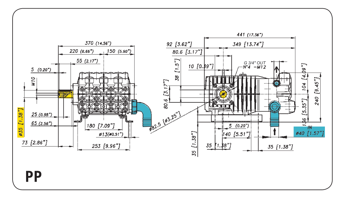 Насос оснащен эксклюзивной и запатентованной системой охлаждения картера. Проток воды в головке обеспечивает эффективное охлаждение масла в картере.
