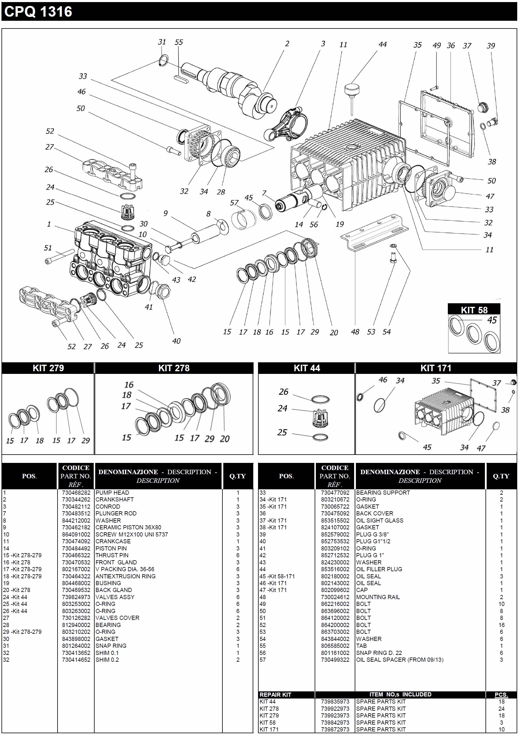 Насос высокого давления Bertolini CPQ 1316 (1000об/мин) (738628973)