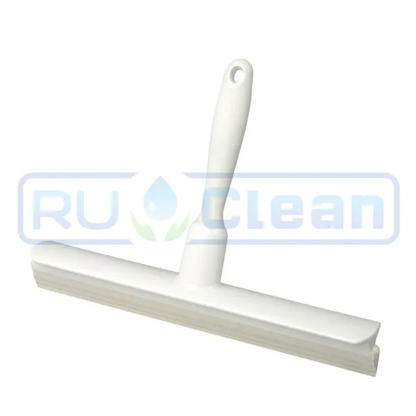 Ручной осушитель FBK с силиконовой резинкой для уборки столов из полипропилена. Осушитель представляет собой одинарную монолитную силиконовую пластину. Рукоятка съемная, длина – 175 мм. С одного прохода насухо убирает жидкость и влагу, не оставляет разводов и легко очищается.