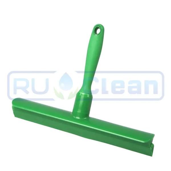 Ручной осушитель FBK с силиконовой резинкой для уборки столов из полипропилена. Осушитель представляет собой одинарную монолитную силиконовую пластину. Рукоятка съемная, длина – 175 мм. С одного прохода насухо убирает жидкость и влагу, не оставляет разводов и легко очищается.
