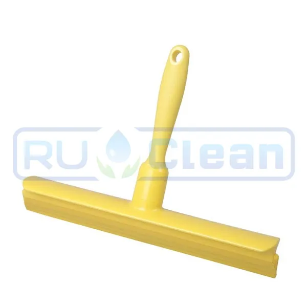 Ручной осушитель FBK с силиконовой резинкой для уборки столов из полипропилена. Осушитель представляет собой одинарную монолитную силиконовую пластину. Рукоятка съемная, длина – 175 мм. С одного прохода насухо убирает жидкость и влагу, не оставляет разводов и легко очищается.