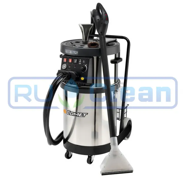 Профессиональный парогенератор Comet GV Etna 4.1 FR. Это многофункциональное устройство, с помощью которого можно производить очистку паром под давлением, всасывать грязь, распылять моющее средство.