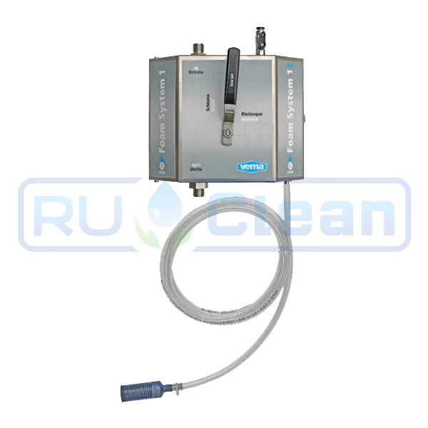Пенная станция Foam System 1 предназначена для работы с водой высокого давления (до 200 бар) без подачи воздуха. Режимы работы: нанесение пены, ополаскивание. Распылитель производит очень густую, липкую пену, обеспечивая идеальную очистку вертикальных поверхностей и потолков при низком расходе чистящих средств. Благодаря полному отсутствию парообразования распылитель также можно абсолютно безопасно использовать для вспенивания высокощелочных детергентов