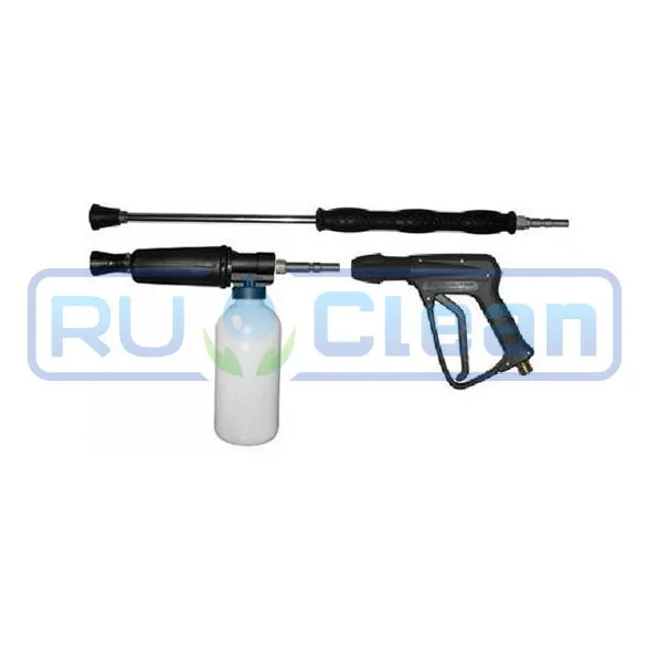 Профессиональный пенокомплект для моек высокого давления. Укомплектован пистолетом Ecoline, быстроразъемным соединением с длинным ниппелем KW и профессиональной пенной насадкой ST-73. Оптимальное решение для автомойки.