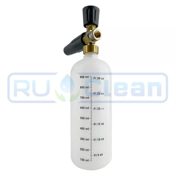 Профессиональная пенная насадка от бренда MTM - это аналог пенораспылителя LS3 хорошо зарекомендовавшего себя. Насадка подключается к пистолету высокого давления с помощью специального адаптера. Вода смешивается с воздухом и моющим средством и на выходе образует густую пену. Используется для нанесения любых средств для бесконтактной мойки.