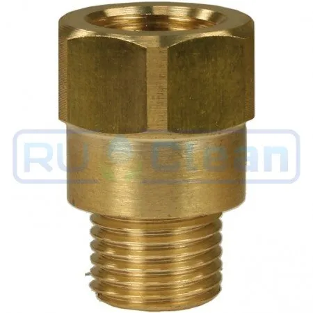 Латунный переходник высокого давления. Допустимое давление 250 бар. Длина переходника вдоль оси - 34 мм.