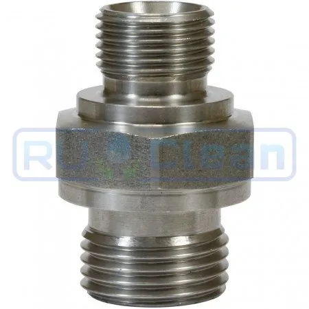 Переходник высокого давления из оцинкованной стали. Допустимое давление 400 бар. Длина переходника вдоль оси - 40 мм.