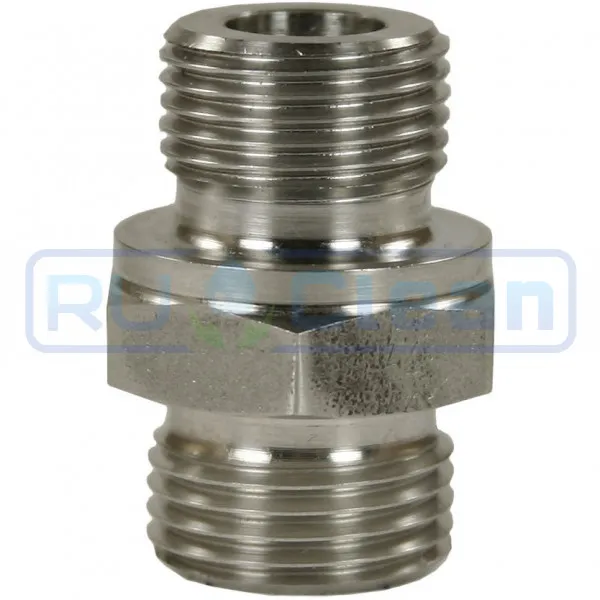 Переходник/соединитель из нержавеющей стали. Резьба 3/8" на 3/8", максимальное давление до 250 бар.