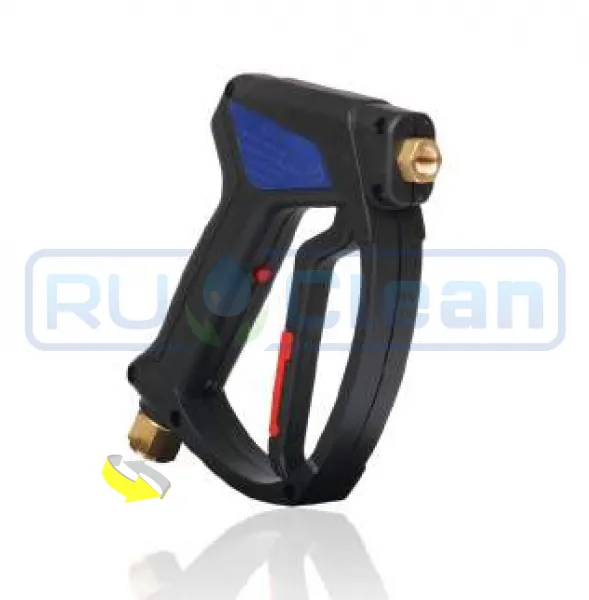Максимальное давление 350бар, максимальная пропускная способность 45л/мин. Надежная и ударопрочная конструкция. Курок оснащен подключением со стандартной резьбой М22х1.5 с вращающимся фитингом. Вращающееся соединение не позволяет скручиваться шлангу, что значительно облегчает работу оператору моечной установки. Подходит к большенству профессиональных аппаратов высокого давления, представленных на рынках стран СНГ.