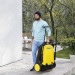Боковая щетка устанавливаются и снимается легко, без применения инструментов. Большие обрезиненные колеса способствуют комфортному движению даже на мокрой поверхности. Конструкция бункера позволяет легко снимать его и устойчиво устанавливать в вертикальном положении.