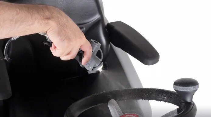 2. Распылительный пистолет с удлинительным шлангом для дезинцекции различных поверхностей - перила, складская техника, саму поломоечную машину.