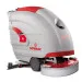 Машина управляется пешим оператором, и оснащена приводом движения. Движение машины осуществляется за счет электропривода - вместе с включением вращения щетки, машина начинает движение. Оператор управляет скоростью движения с помощью регулировок на панеле управления. Электропитание осуществляется от аккумуляторных батарей, установленных на борту моечного агрегата. Машина полностью автономна: во время работы оператору не нужно отвлекаться и регулярно поправлять сетевой кабель. Бортовая сеть 24 В - 4-е аккумулятора по 6 В соединены последовательно. Машина комплектуется тяговыми аккумуляторными батареями гелевого типа. Емкость батарей 180 Ач (при С5), время работы от одного заряда порядка 4-х часов.
