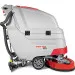 Машина управляется пешим оператором, и оснащена приводом движения. Движение машины осуществляется за счет электропривода - вместе с включением вращения щетки, машина начинает движение. Оператор управляет скоростью движения с помощью регулировок на панеле управления. Электропитание осуществляется от аккумуляторных батарей, установленных на борту моечного агрегата. Машина полностью автономна: во время работы оператору не нужно отвлекаться и регулярно поправлять сетевой кабель. Бортовая сеть 24 В - два аккумулятора по 12 В соединены последовательно. Машина комплектуется тяговыми аккумуляторными батареями гелевого типа. Емкость батарей 105 Ач (при С5), время работы от одного заряда порядка 3-х часов.