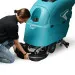 Машина управляется пешим оператором и не оснащена приводом движения. Движение осуществляется за счет усилия толкания, а также за счет вращения щетки. Усилие толкания на ровной горизонтальной поверхности не превышает 2-3 кг. Электропитание осуществляется от аккумуляторных батарей, установленных на борту моечного агрегата. Машина полностью автономна: во время работы оператору не нужно отвлекаться и регулярно поправлять сетевой кабель. Бортовая сеть 24 В - два аккумулятора по 12 В соединены последовательно. Машина комплектуется тяговыми аккумуляторными батареями гелевого типа. Емкость батарей 100 Ач (при С5), время работы от одного заряда порядка 2-х часов.