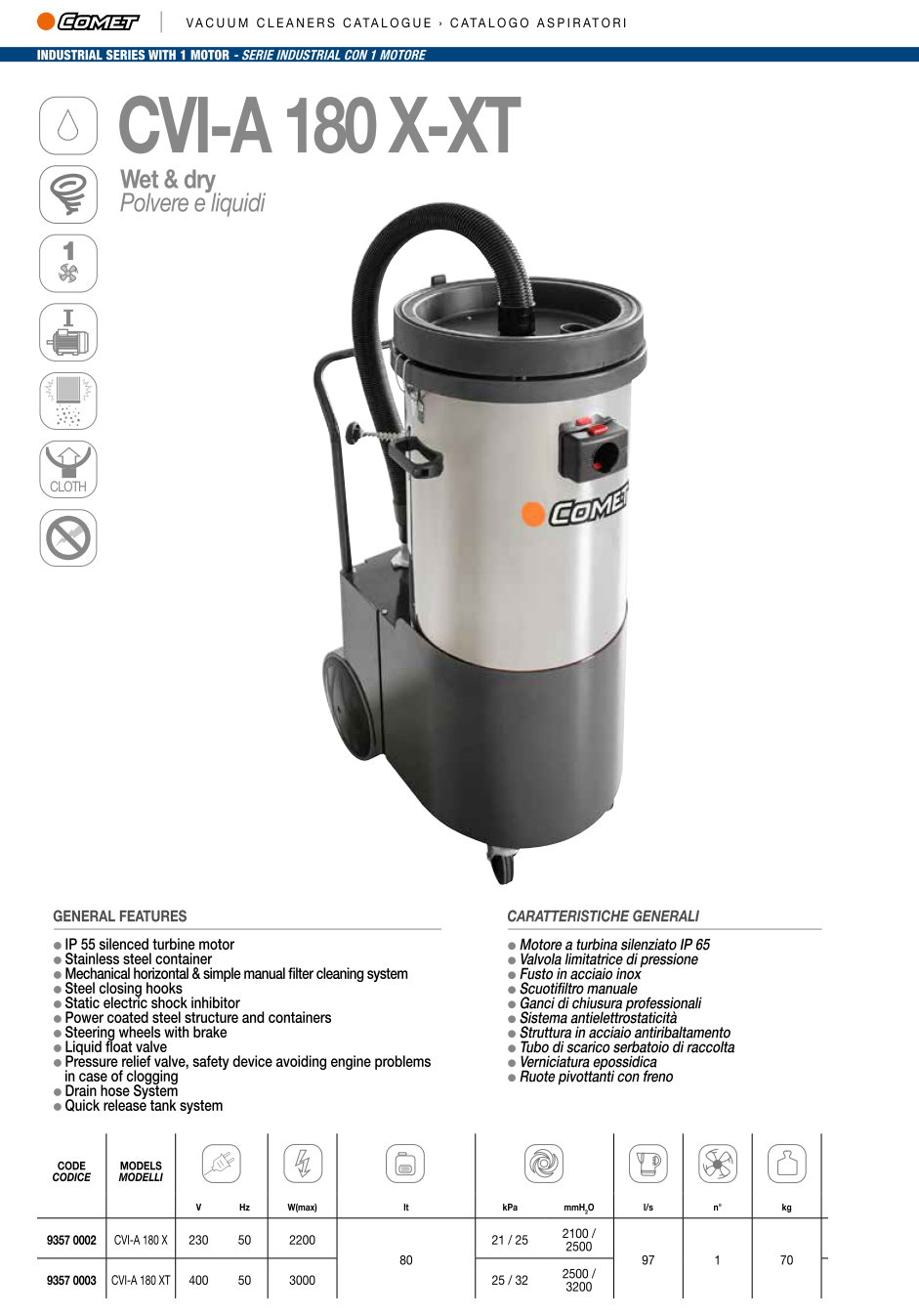 Пылеводосос Comet CVI-A 180 X - профессиональная модель для влажной и сухой уборки.