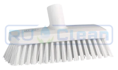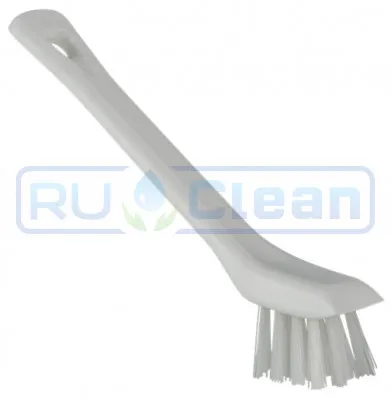 Универсальная ручная щетка предназначена для чистки столов, конвейерных лент, разделочных досок, ведер, больших мерных ковшей и оборудования с труднодоступными углами и углублениями.