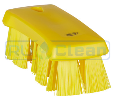 Щетка с длинной ручкой и жестким ультрагигиеничным ворсом UST. Повышенная прочность ворса обеспечивает высокое качество очистки станков, ведер, контейнеров и труб, где высок риск загрязнения. Все щетки UST имеют особый рисунок ворса, который минимизирует риск выпадения и попадания ворсинок в пищу.