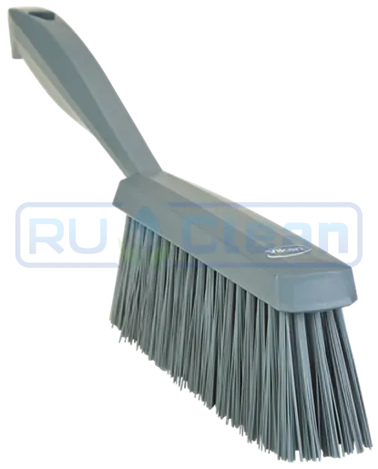 Убирайте муку и другие сыпучие вещества с конвейерных лент, производственных поверхностей, столов и оборудования с помощью ручной щетки. Можно использовать с совком Vikan 5660x.