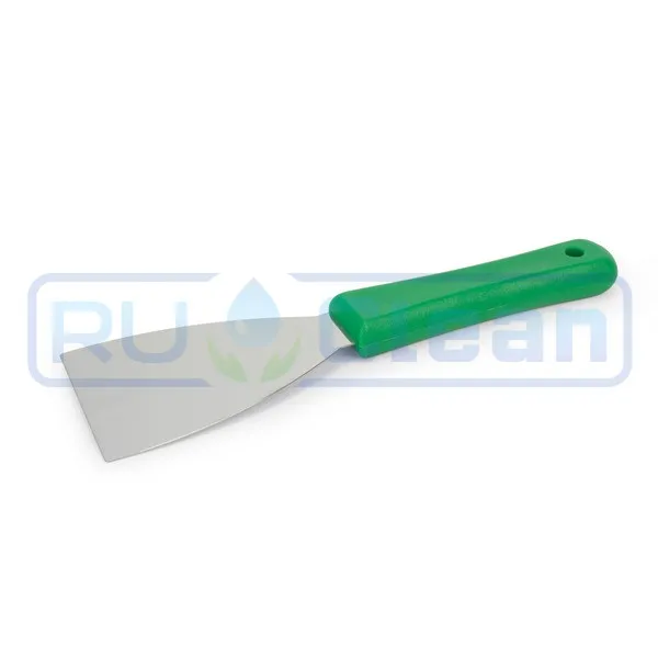 Многоцелевой скребок с пластиковой ручкой и гибким лезвием из нержавеющей стали. Для удобства пользования выпускается в 5 цветовых кодах в соответствии с правилами HACCP.