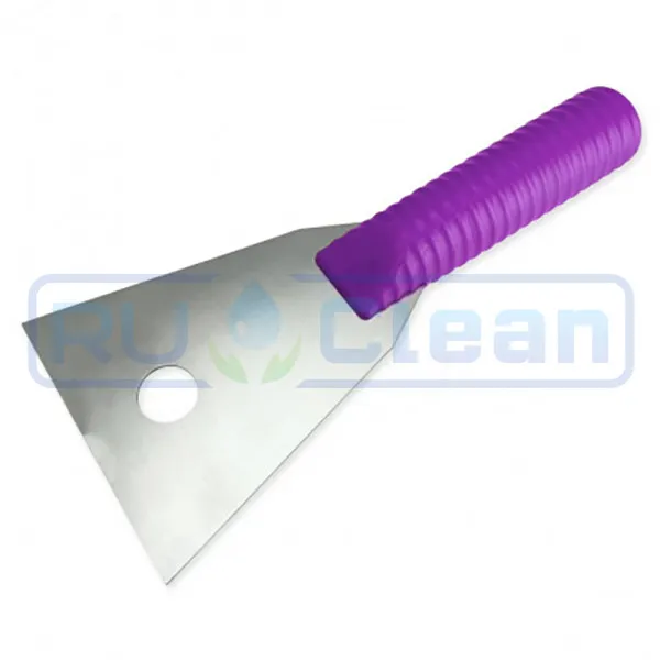 Ручной скребок с лезвием из нержавейки используется для удаления наслоений пригоревшего жира и других устойчивых загрязнений.