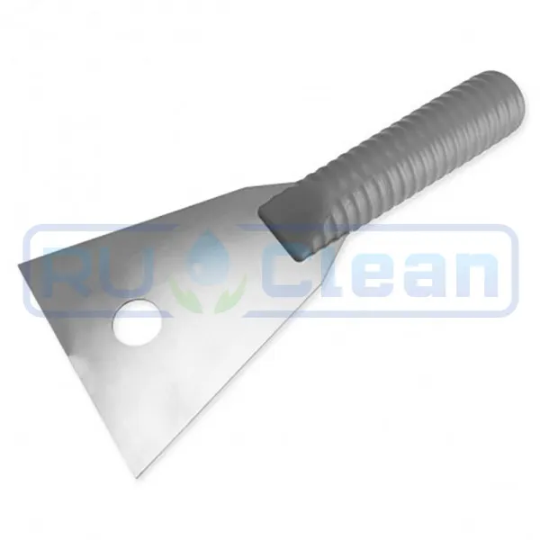 Ручной скребок с лезвием из нержавейки используется для удаления наслоений пригоревшего жира и других устойчивых загрязнений.