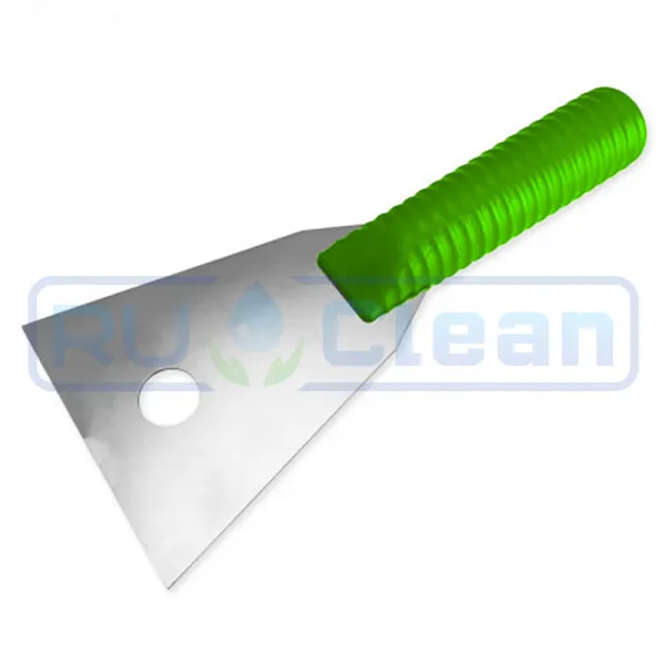 Ручной скребок с лезвием из нержавейки используется для удаления наслоений пригоревшего жира и других устойчивых загрязнений.