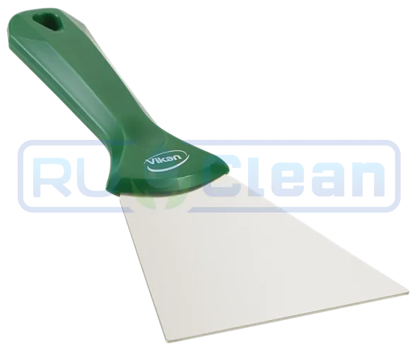 Этот ручной скребок имеет нержавеющее гибкое стальное лезвие с защищенными закругленными углами, высокопрочное крепление и специальный эргономичный хват для руки. Он идеально подходит для удаления липких отложений, которые засоряют щетки, а также для удаления засохших или подгорелых загрязнений и и ингредиентов.
