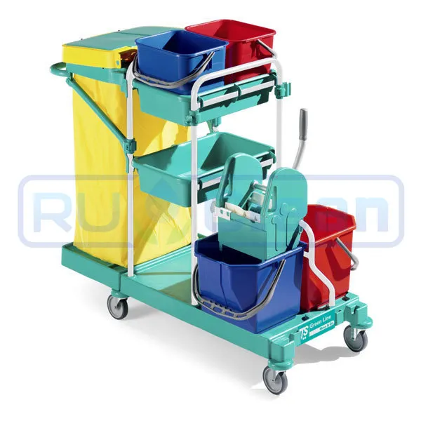 Сервисная клининговая тележка из рислана Green 150 с колесами предназначена для сбора и транспортировки мусора и белья, а также для хранения и перевозки предметов для клинига.