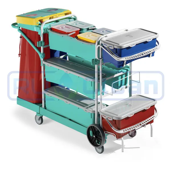 Сервисная клининговая тележка из рислана для профессионального клининга GREEN LINE Healthcare 1000 предназначена для сбора и транспортировки мусора и белья, а также для хранения и перевозки предметов для клинига.