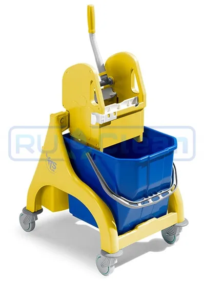 Тележка Nick с одним ведром на 25 литров. Предназначена для проведения влажной уборки в различных помещениях. Ведро выполнено из качественного пластика. Передвигается тележка Nick на четырех поворотных колесах, тележка оснащена универсальным отжимом "Тес" желтого цвета.