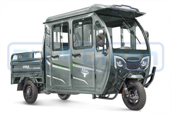 Электрический трицикл Rutrike Рейс 1300 60V1200W оснащён закрытой кабиной с четырьмя дверями и двумя рядами сидений — передним для водителя и задним для двух пассажиров. В задней части расположено грузовое отделение с откидными бортами, рассчитанное на перевозку грузов весом до 700 кг. Удобный и функциональный электрический трицикл Rutrike Рейс 1300 является отличным решением для использования в гостиничных и складских комплексах, для транспортировки грузов на короткие расстояния, на дорогах общего пользования и закрытых территориях, включая использование внутри помещений.