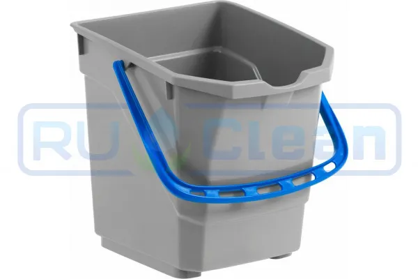 Ведро для тележки TTS NICKITA 15 л, серое с синей ручкой используется для мытья полов. Наличие ручки упрощает транспортировку ведра, за счет чего его можно использовать без тележки.