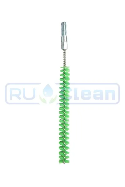 Ерш-насадка с резьбой для гибкого троса. Эффективно очищают трубы и бутылки на пищевых производствах. Скрученный стальной трос, оканчивающийся петлей из щетины, предотвращает повреждение и царапанье поверхности.