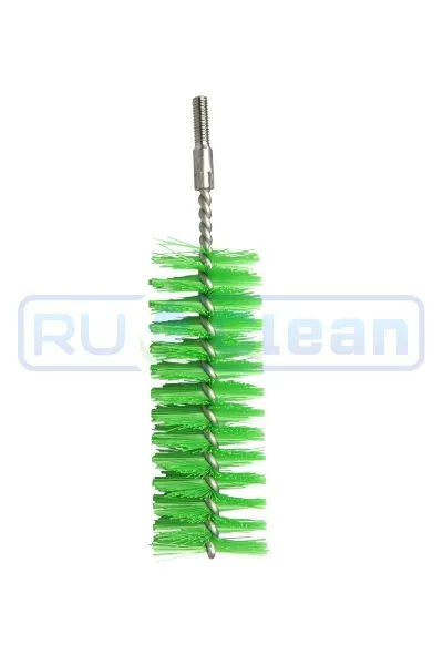 Ерш-насадка с резьбой для гибкого троса. Эффективно очищают трубы и бутылки на пищевых производствах. Скрученный стальной трос, оканчивающийся петлей из щетины, предотвращает повреждение и царапанье поверхности.